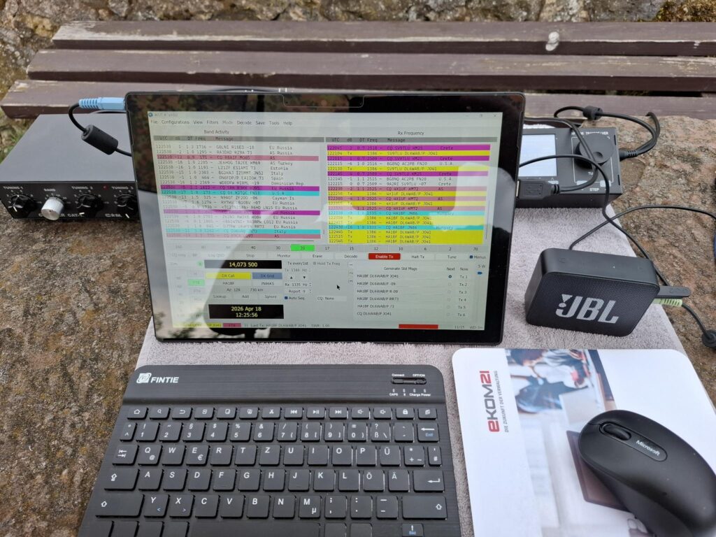 Da die Bedingungen heute wirklich grottenschlecht waren, kamen nur wenige Stationen ins Logbuch. Egal, ich konnte das Mobilequipment testen, alles hat so funktioniert wie es sollte und die Antenne (JPC-12) hat auch wunderbar mitgespielt. Selbst das Wetter war uns gnädig, was will man mehr.